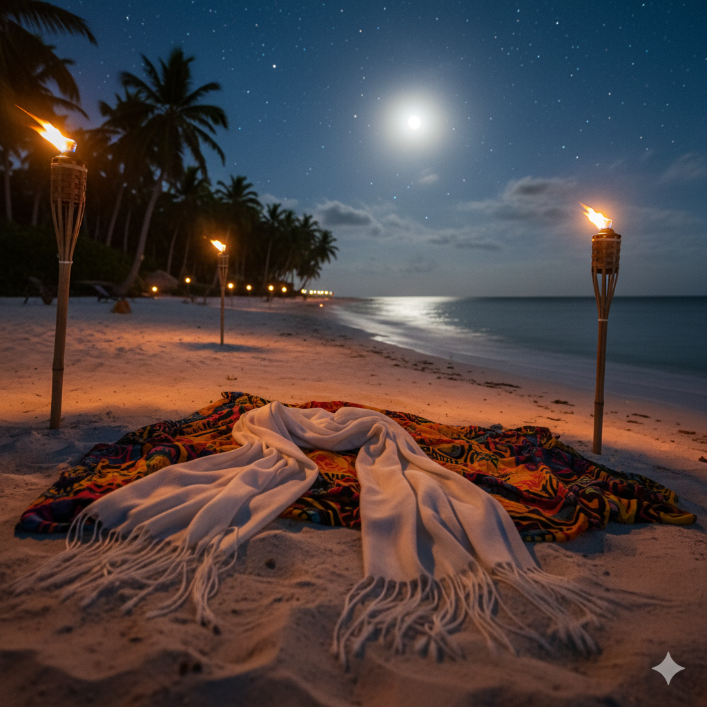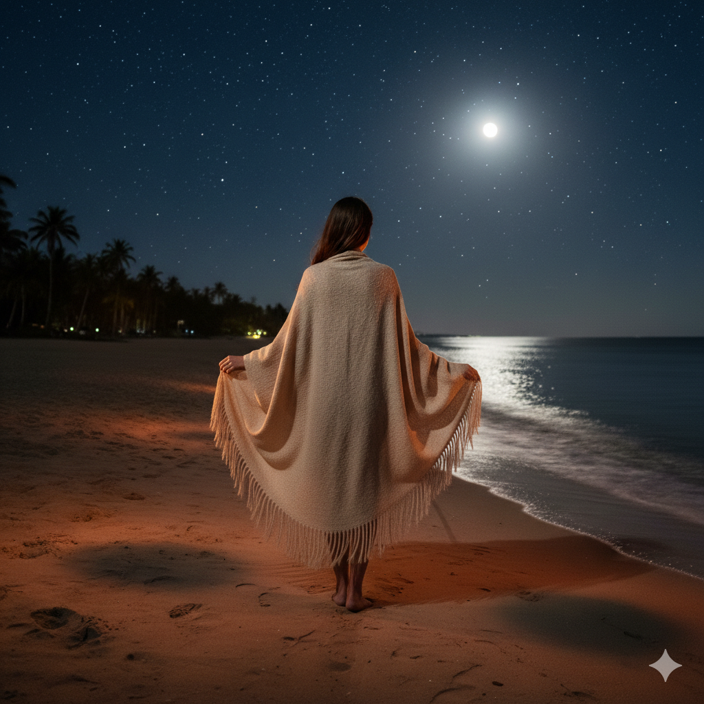 Quando o cenário é pé na areia, o vento costuma ser constante — e depois do pôr do sol a sensação térmica muda rápido.